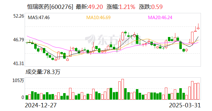 3月30日,恒瑞医药发布2024年年度报告,2024年实现营业收入279.85亿元,同比增22.63%,归属于上市公司股东的净利润63.37亿元,同比增47.28%,归属于上市公司股东的扣非净利润61.78亿元,同比增49.18%,公司业绩显著增长,营收、净利均创新高。